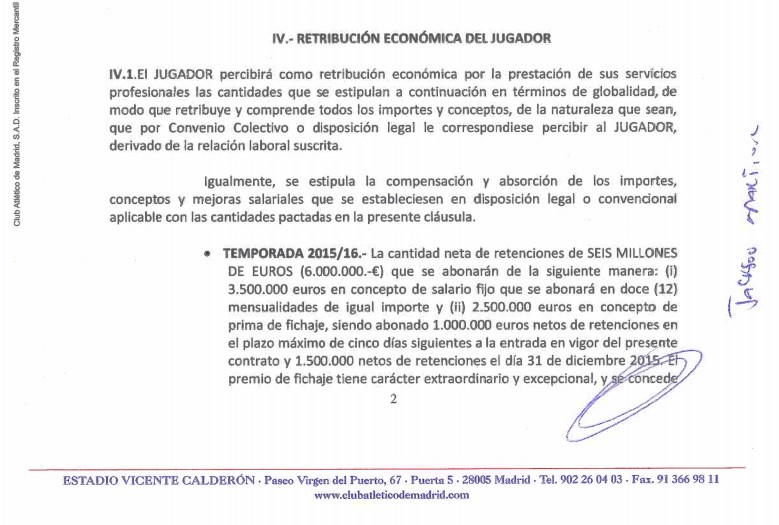 El desglose por temporada consistía en una ficha de 6 millones el primer año, 3,5 y una prima por fichaje de 2,5, y 5 millones en los tres cursos restantes.