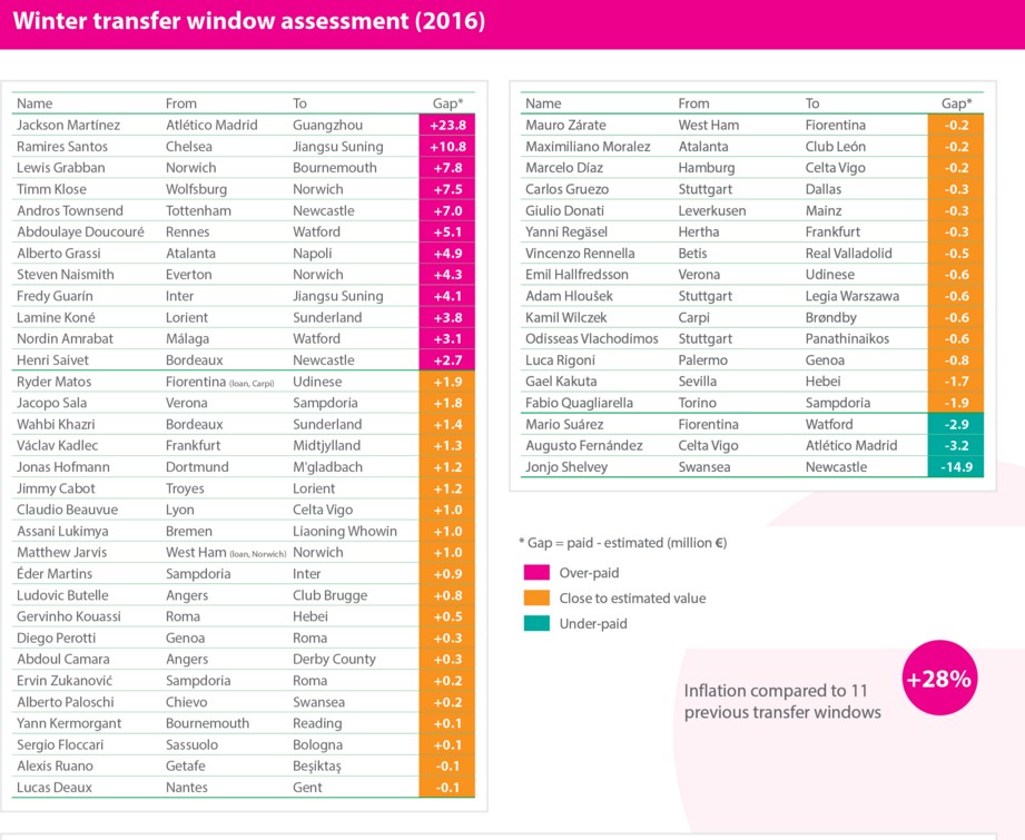 El fútbol chino, el dinero de la Premier, las prisas por revitalizar un equipo a base de nuevas caras… Todo ello ha influido de manera directa en el mercado invernal de 2016.