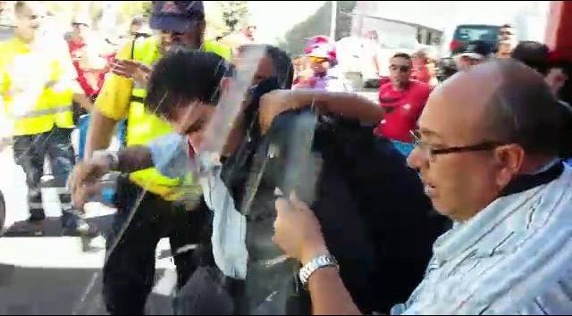 El hecho ocurrió mientras los cuerpos de seguridad intentaban proteger al trío arbitral. Cuando los colegiados estaban entrando en el taxi que les llevaría al aeropuerto, la puerta del vehículo se cerró de forma brusca provocando en uno de los asistentes un corte en el rostro por lo que tuvo que ser atendido por los servicios médicos desplazados al Silvestre Carrillo para el partido.