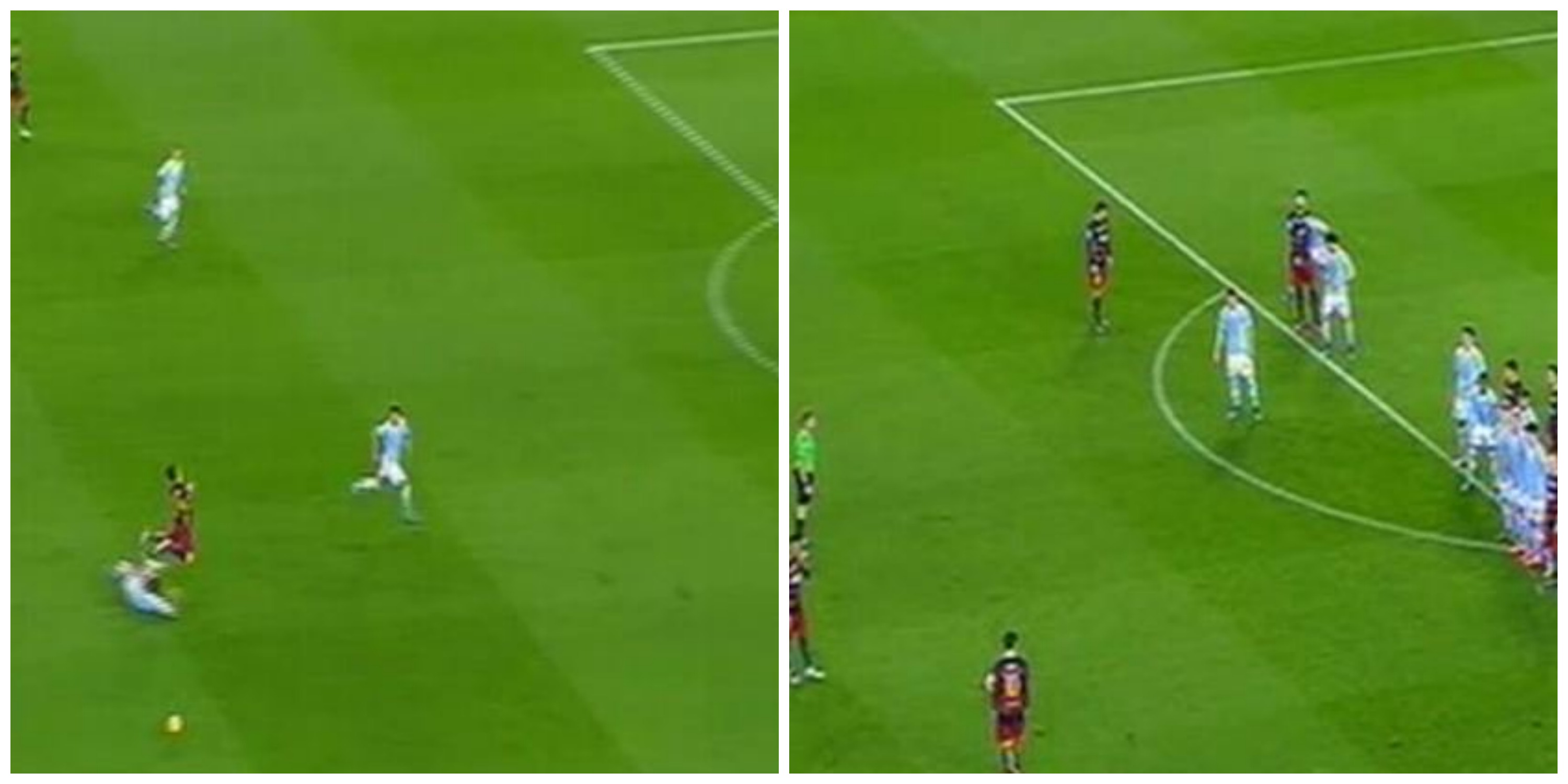 En el penalti, Suárez y un jugador del Celta entraron al área antes de tiempo y en la falta, Messi estuvo más listo que nadie, sobre todo más que Hernández Hernández, y adelantó la falta unos siete metros.