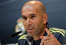 Zinedine Zidane en la sala de prensa de Valdebebas. | EFE