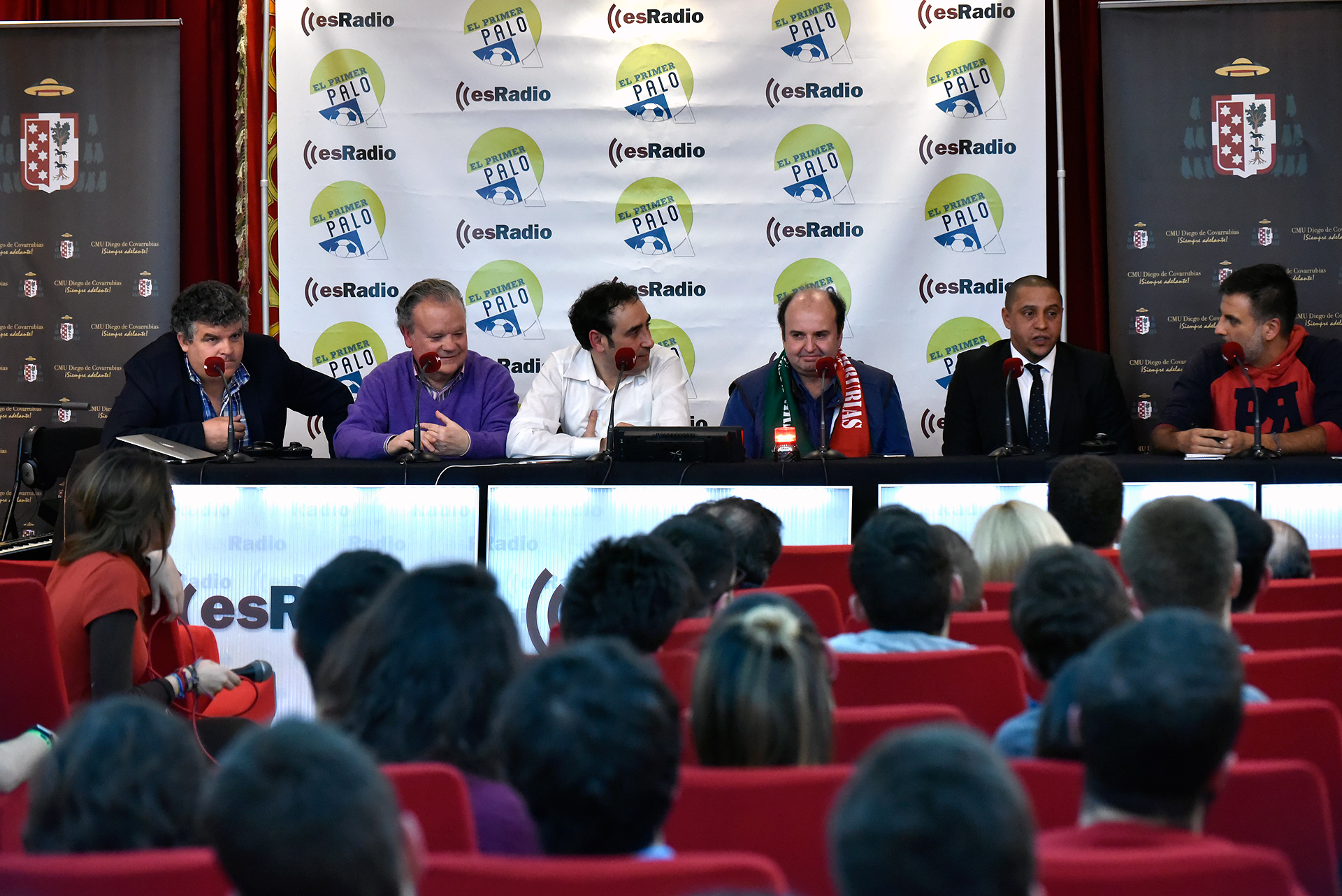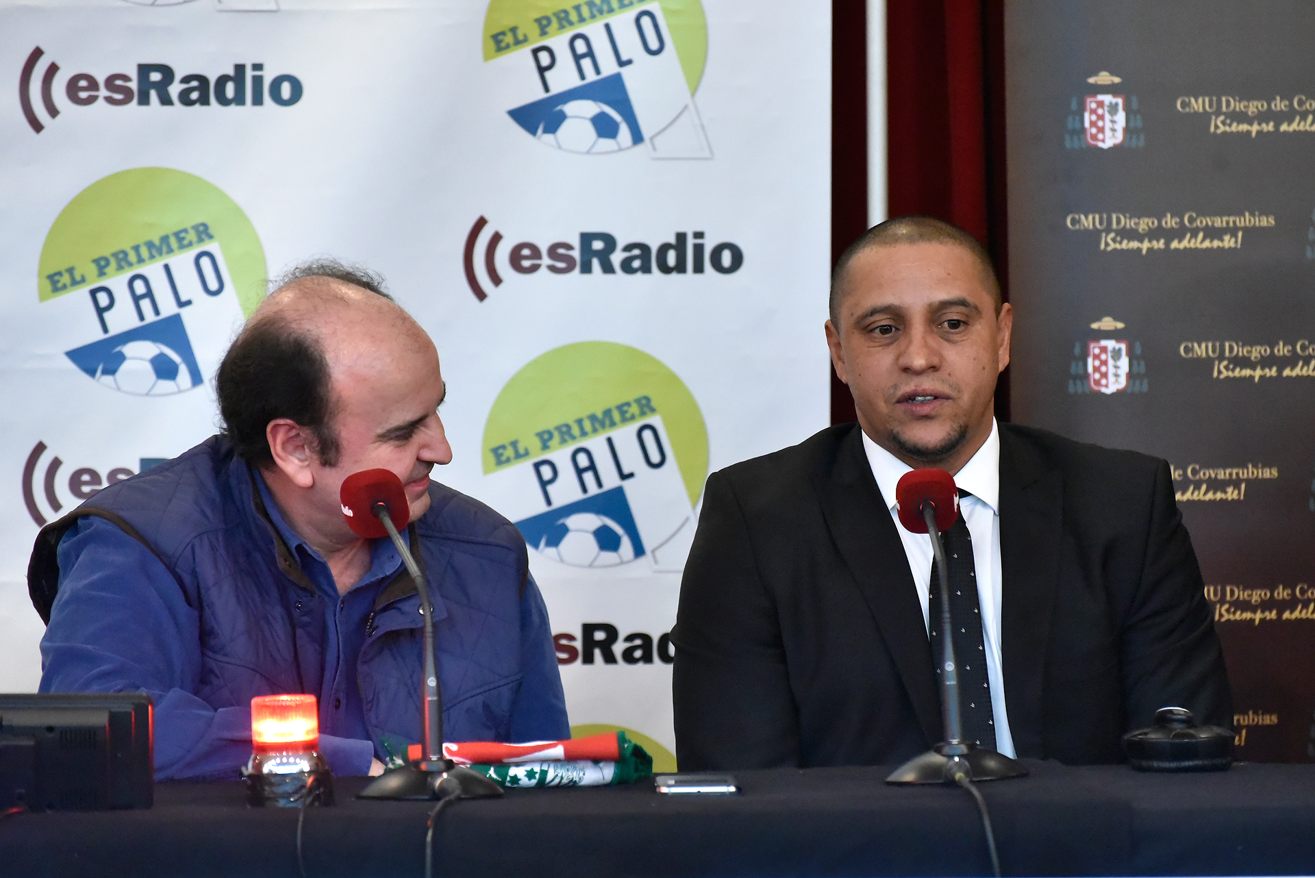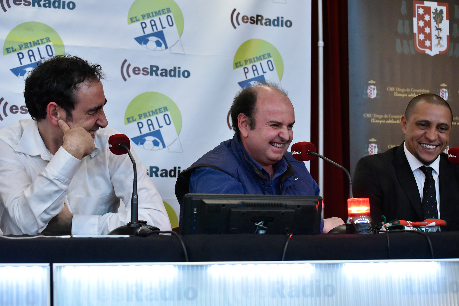 El Primer Palo, el programa deportivo nocturno que Juanma Rodríguez dirige y presenta en esRadio, ha comenzado este miércoles su gira por los colegios mayores de Madrid. Y lo ha hecho a lo grande. En un salón de actos lleno hasta la bandera y con Roberto Carlos como invitado especial.