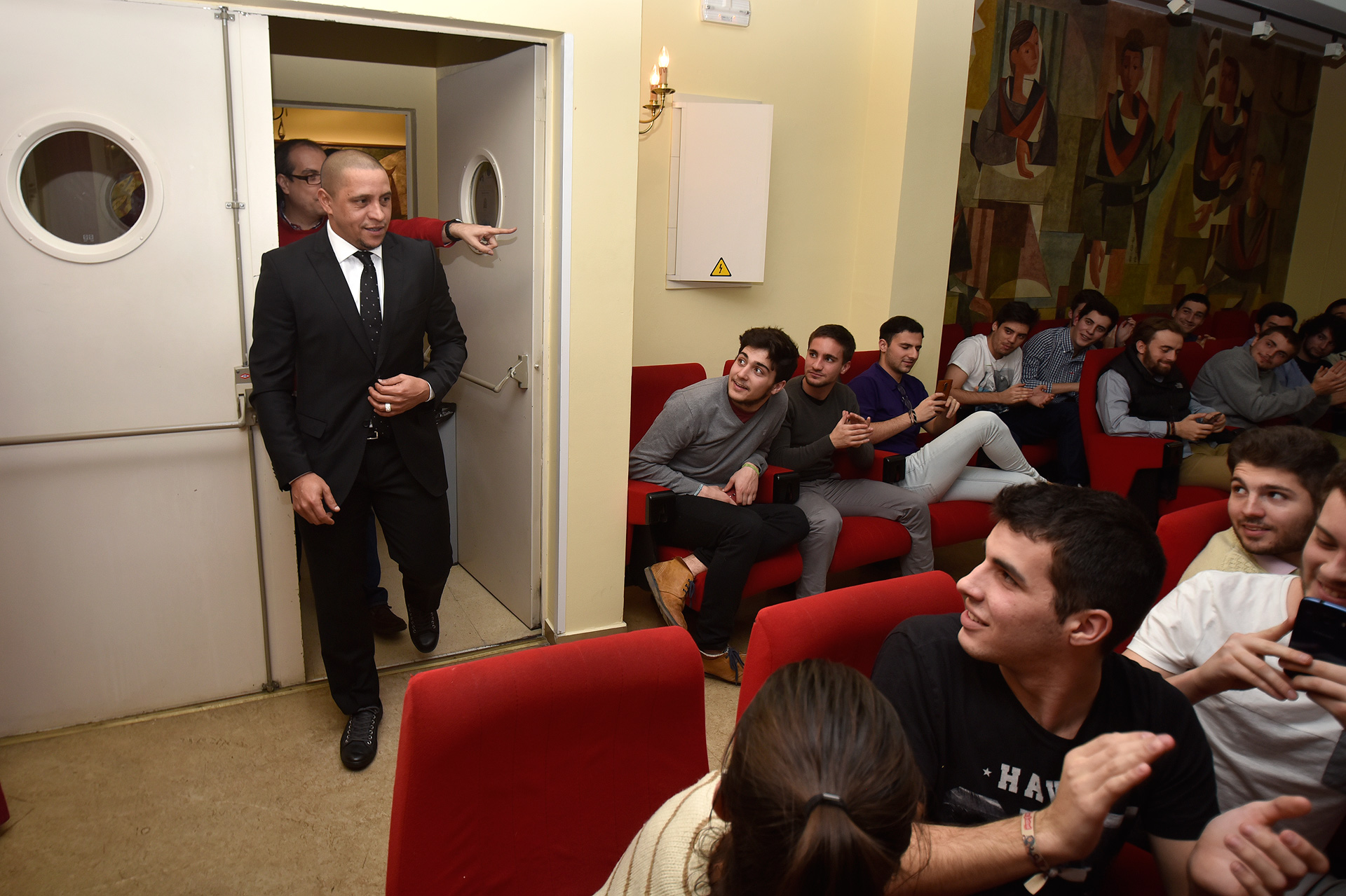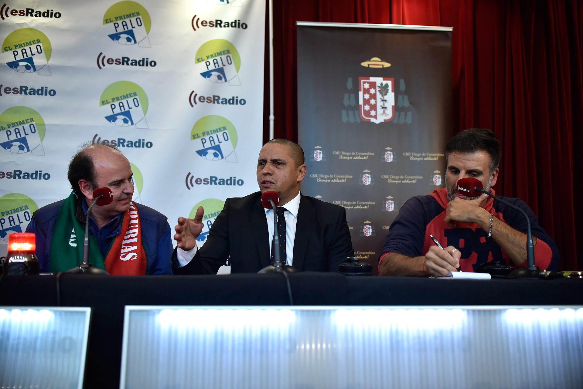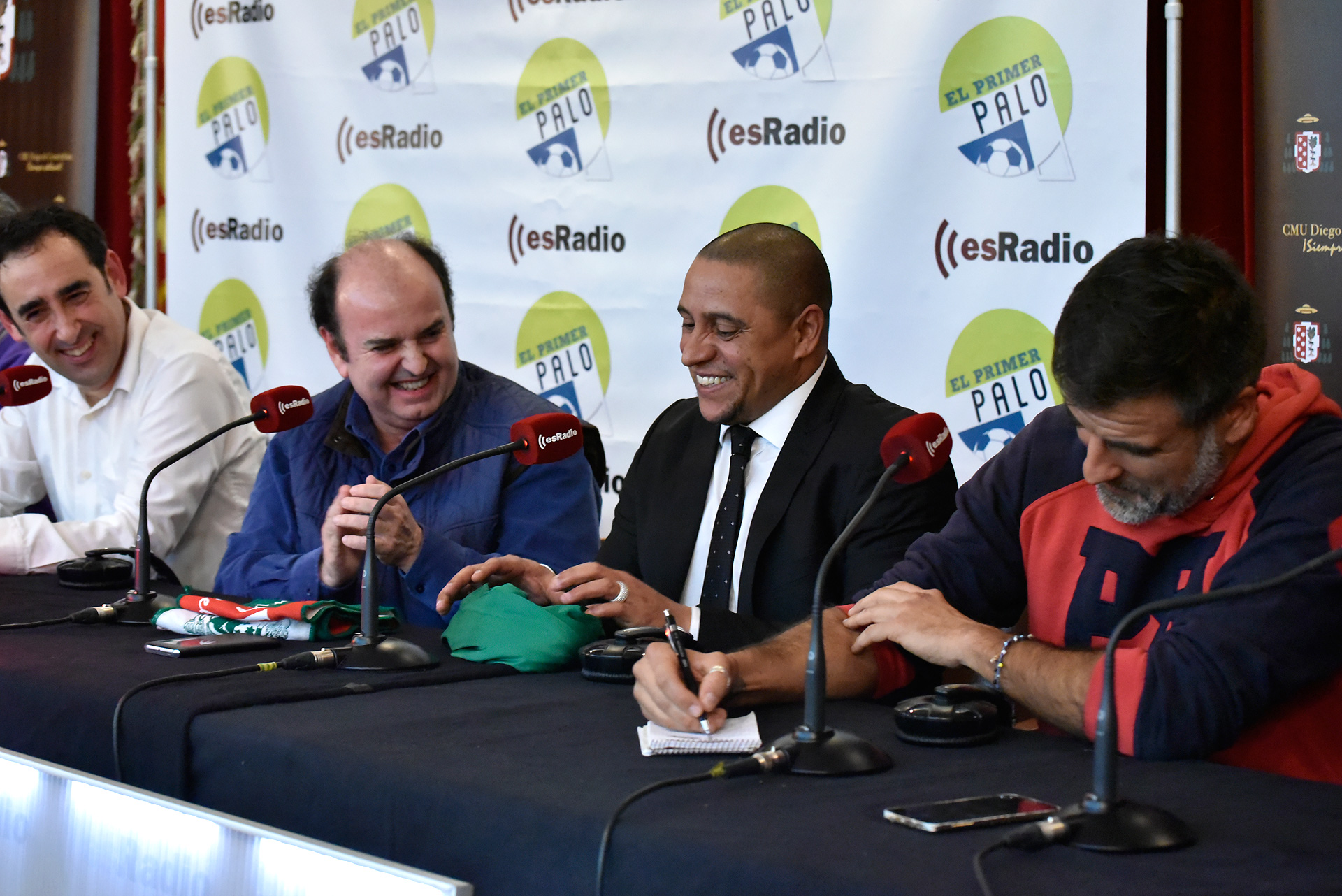 El Primer Palo, el programa deportivo nocturno que Juanma Rodríguez dirige y presenta en esRadio, ha comenzado este miércoles su gira por los colegios mayores de Madrid. Y lo ha hecho a lo grande. En un salón de actos lleno hasta la bandera y con Roberto Carlos como invitado especial.