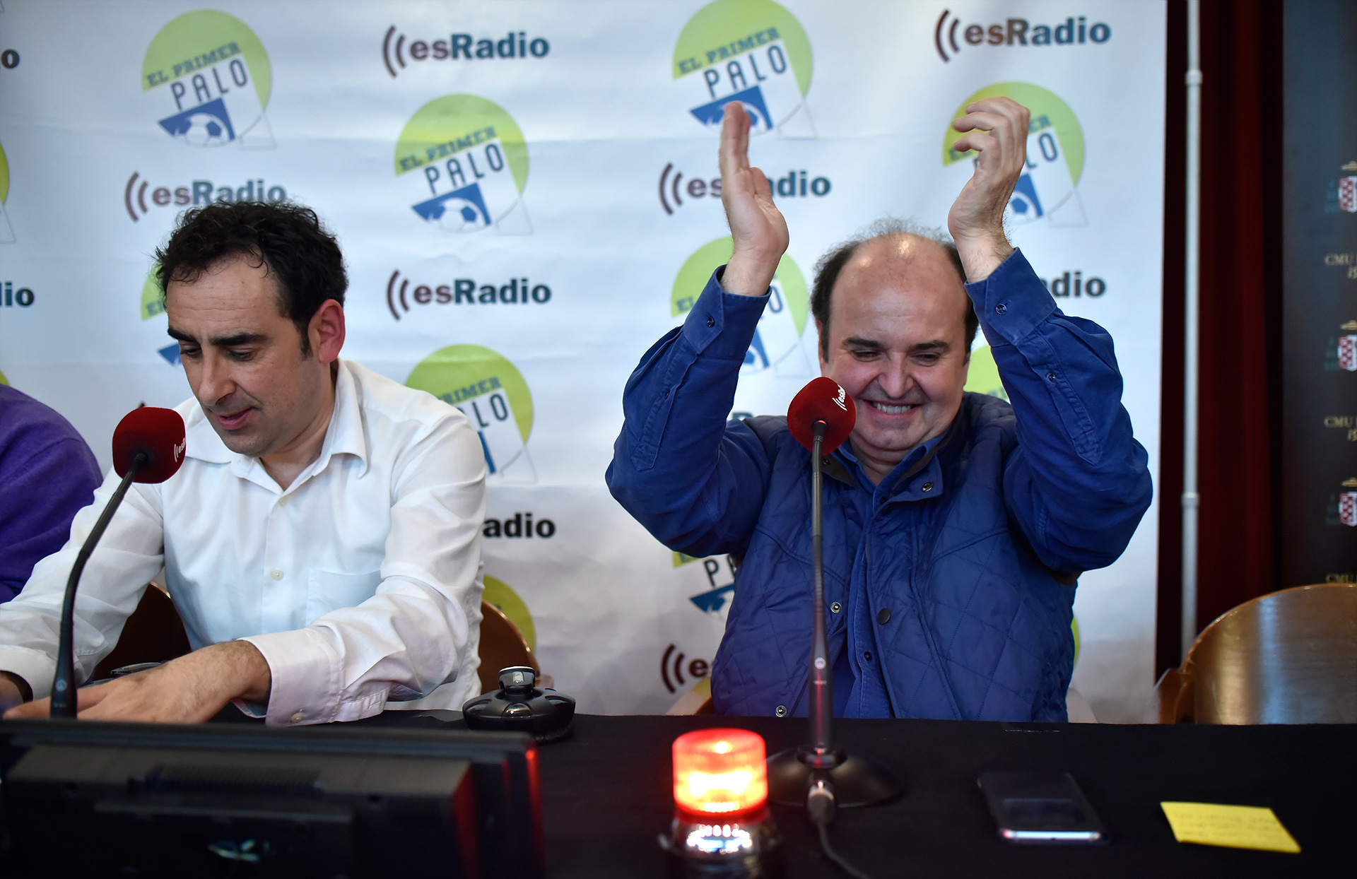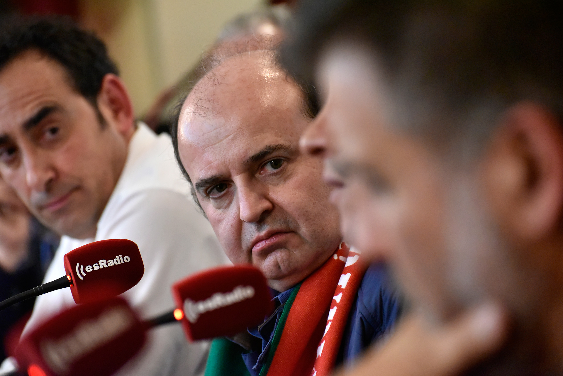 Juanma e Itarralde escuchan con atención las anécdotas del 'crack' madridista