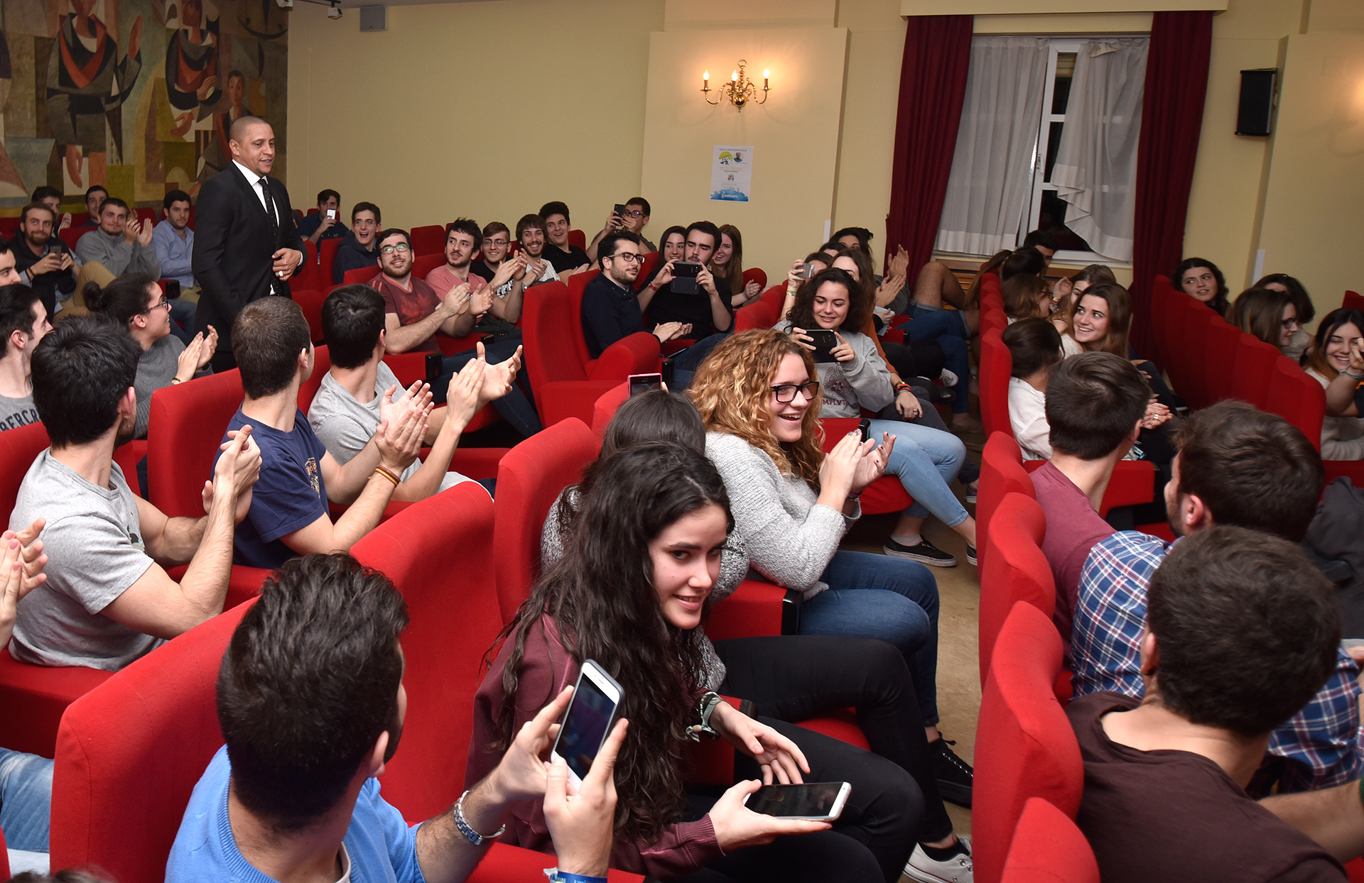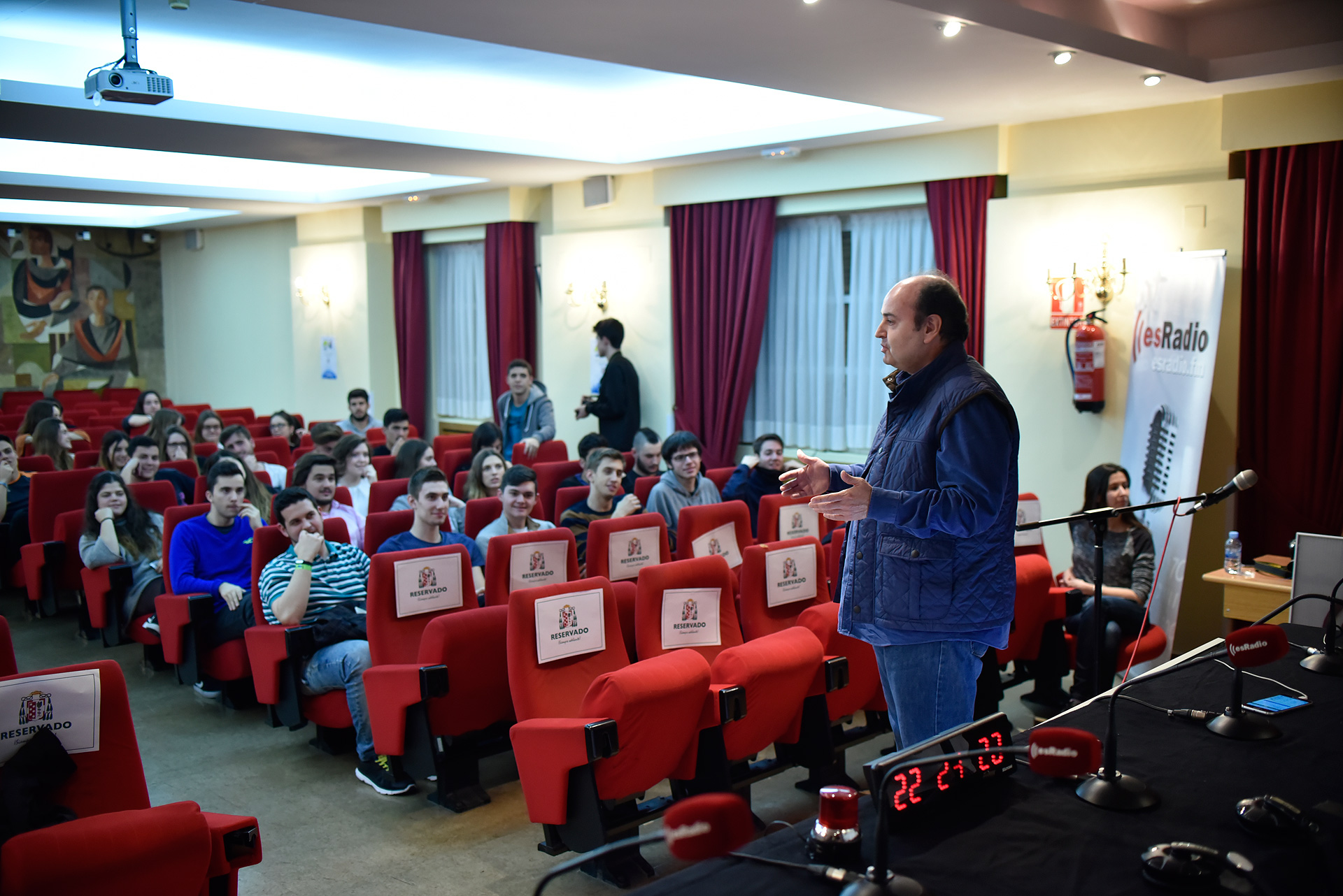 Juanma habló con los alumnos del Colegio Mayor Universitario Diego de Covarrubias en los minutos previos al comienzo del programa