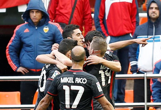 A los veinte minutos, el público pidió penalti en una caída de André Gomes ante Etxeita y en la jugada inmediata el Valencia dispuso de la mejor opción, pero Negredo remató alto.