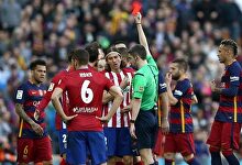 Filipe Luis ve la roja en el Camp Nou. | EFE