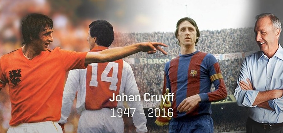 Fallece Johan Cruyff a los 68 años. Ex futbolista y ex entrenador, dejará un gran legado al mundo del fútbol. Sus equipos: el Ajax de Amsterdam y el Barcelona.