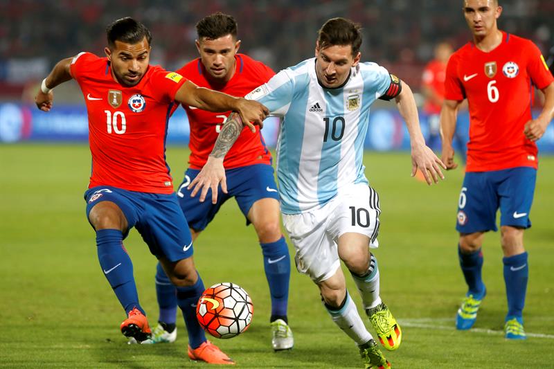 La selección chilena se adelantó a los 10 minutos con un tanto de Felipe Gutiérrez pero los visitantes remontaron con goles de Ángel Di María a los 19 y Gabriel Mercado a los 24 en un partido de la quinta jornada de la liguilla de clasificación para el Mundial de Rusia 2018.