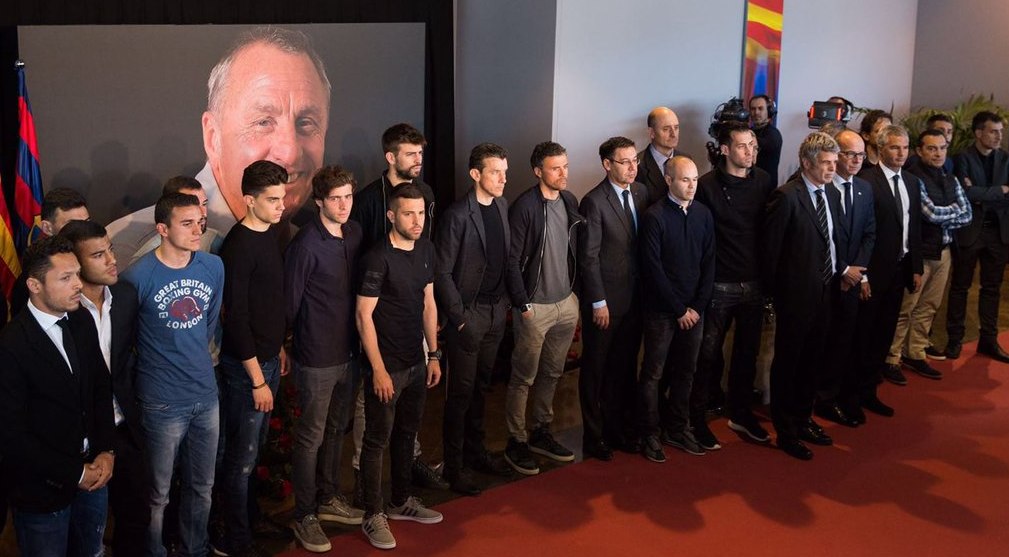 Luis Enrique, su cuerpo técnico y toda la plantilla del Barcelona -a excepción de los sudamericanos que siguen concentrados con sus selecciones- acudieron al memorial dedicado a Johan Cruyff en el vestíbulo de la tribuna presidencial del Camp Nou.