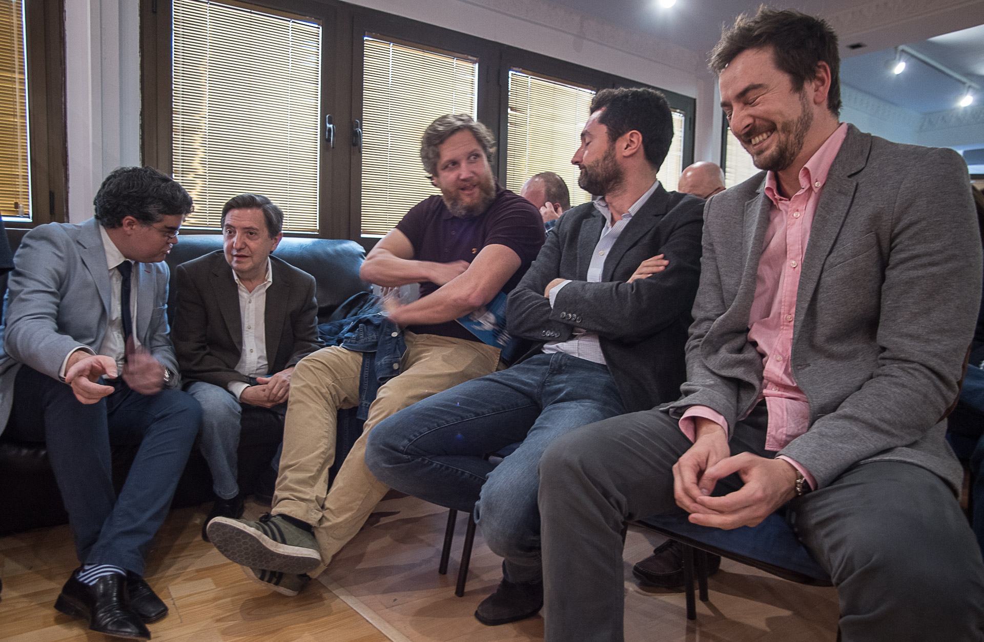 Cinco de los seis protagonistas de la tarde: de izquierda a derecha Vicente Azpitarte, Federico Jiménez Losantos, David Gistau, Hughes y Jorge Bustos, minutos antes de que empezase el acto