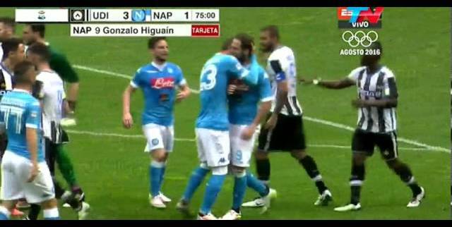Higuaín se encara al árbitro tras ser expulsado por doble amarilla.