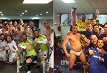 Los jugadores del Almere City imitaron la famosa foto de los jugadores blancos tras ganar el Clásico.