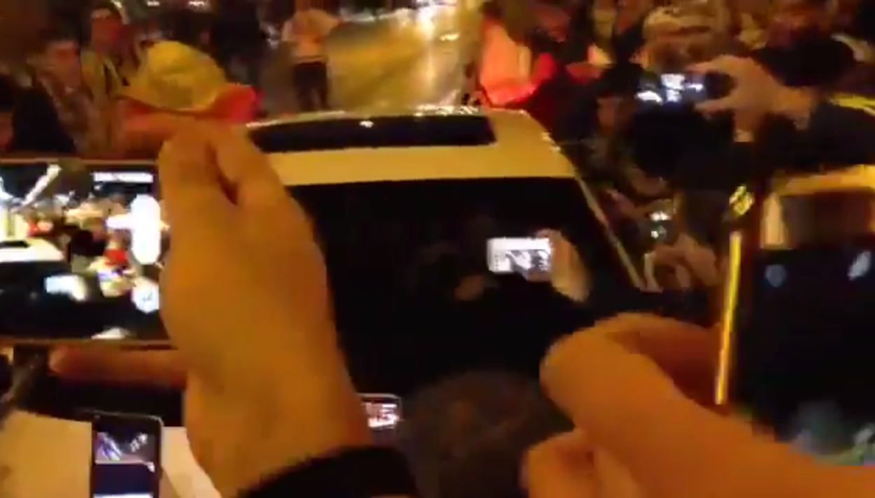 James Rodríguez acosado a la salida de Bernabéu tras en partido de vuelta de cuartos de la Champions League.