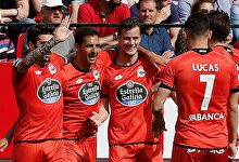 El Depor celebra el gol de Oriol Riera| EFE El Sevilla pincha de nuevo en el Pizjuán ante el Depor (1-1) El Depor con un gol postrero de Riera anuló el tanto de Iborra. El Sevilla dice adiós a sus opciones de Champions.Los coruñeses, virtualmente salvados