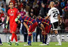 El Barcelona se ahoga en la orilla | EFE El Barcelona se hunde y deja la Liga ardiendo (1-2) El Valencia asaltó el Camp Nou con goles de Rakitic en propia puerta y Mina. Sobresaliente actuación de Diego Alves. El gol de Messi, insuficiente.