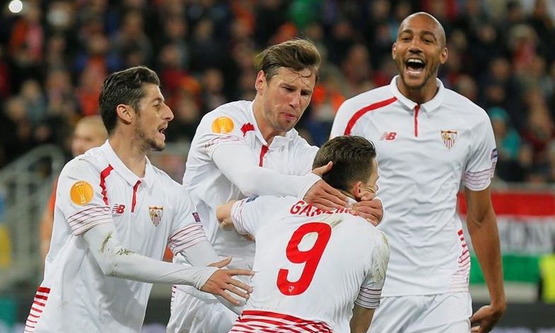 Debido a la guerra en el este de Ucrania, el partido se disputó en el oeste del país, Lviv, pero los ucranianos no parecieron acusar el exilio y pusieron en muchos aprietos a la defensa sevillista, especialmente en la última media hora del primer tiempo. El técnico rumano Mircea Lucescu sorprendió durante parte del encuentro a Unai Emery, pero ya no cuenta ni con la calidad de la plantilla ni con la pléyade de brasileños que se alzaran con la última edición de la Copa de la UEFA en 2009.