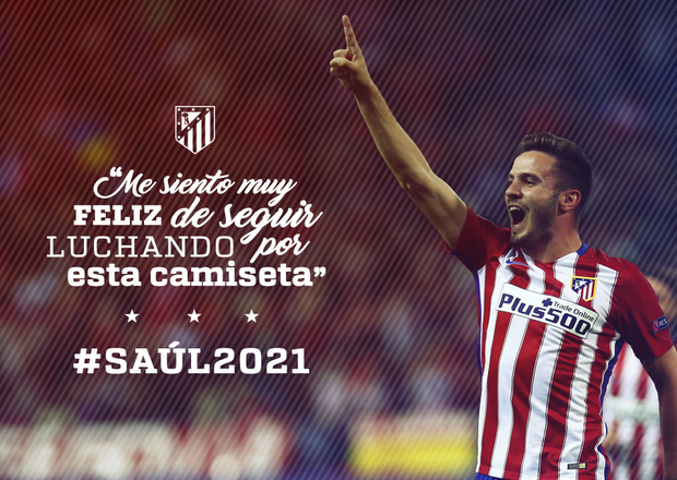 "Estoy muy feliz por poder seguir defendiendo esta camiseta", ha comentado el propio Saúl en la página web del Atlético de Madrid.