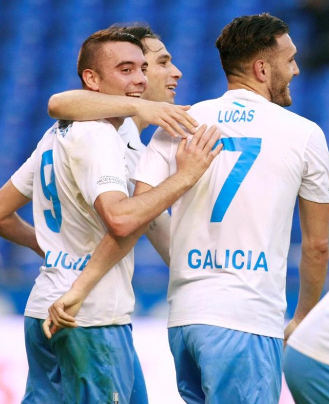 Se adelantó Galicia en la primera parte con un gol de Iago Aspas y en el último instante empató Venezuela por medio de Josef Martínez. En la imagen, Carlos Suárez (i) se lleva el balón ante el deportivista Pedro Mosquera.