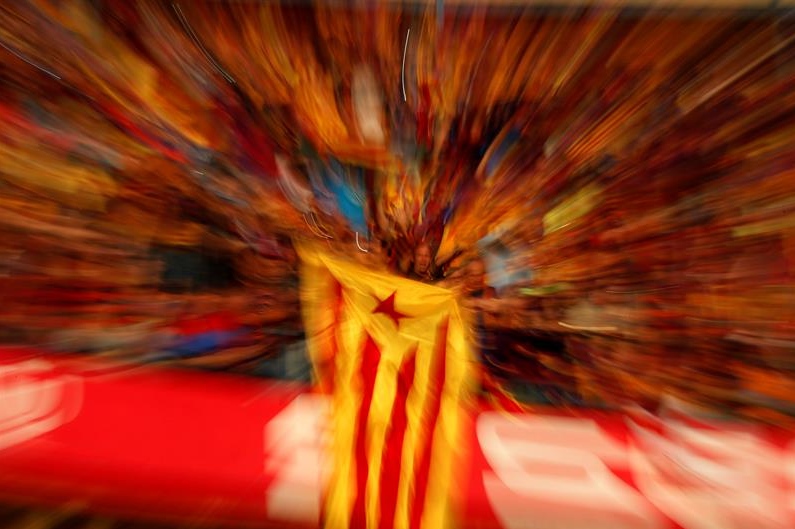 Numerosas banderas separatistas catalanas en las gradas del Vicente Calderón.