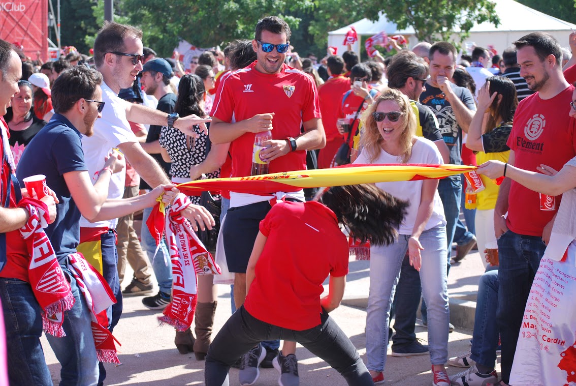 Buen rollo en la Fan Zone del Sevilla