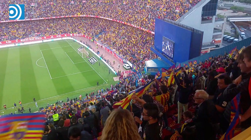 Numerosos aficionados azulgranas mostraron en la grada bastantes esteladas -la bandera separatista catalana cuya entrada en el campo permitió el juez después de la prohibición por parte de la Delegación del Gobierno en Madrid.