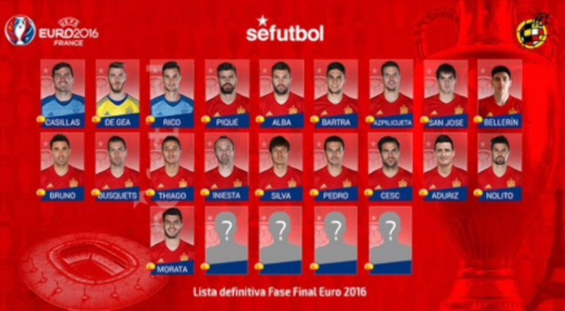 OFICIAL | ¡Ya tenemos 19 elegidos para la reconquista de Europa! Esta tarde, lista definitiva #EURO2016 #VamosEspaña pic.twitter.com/DulQFXqyG7