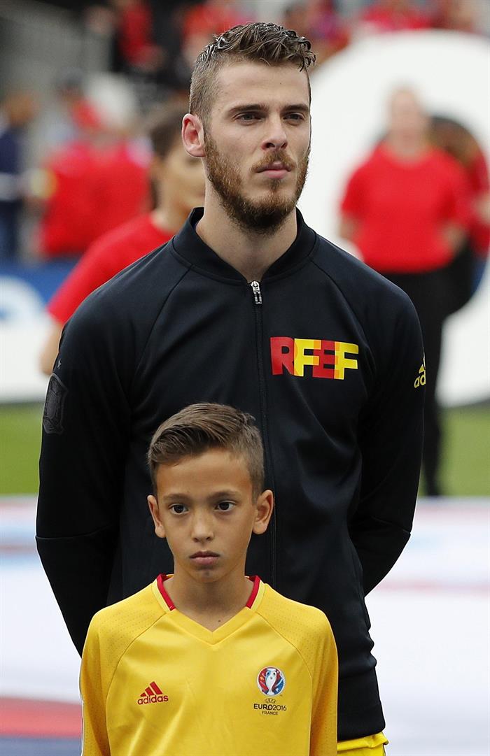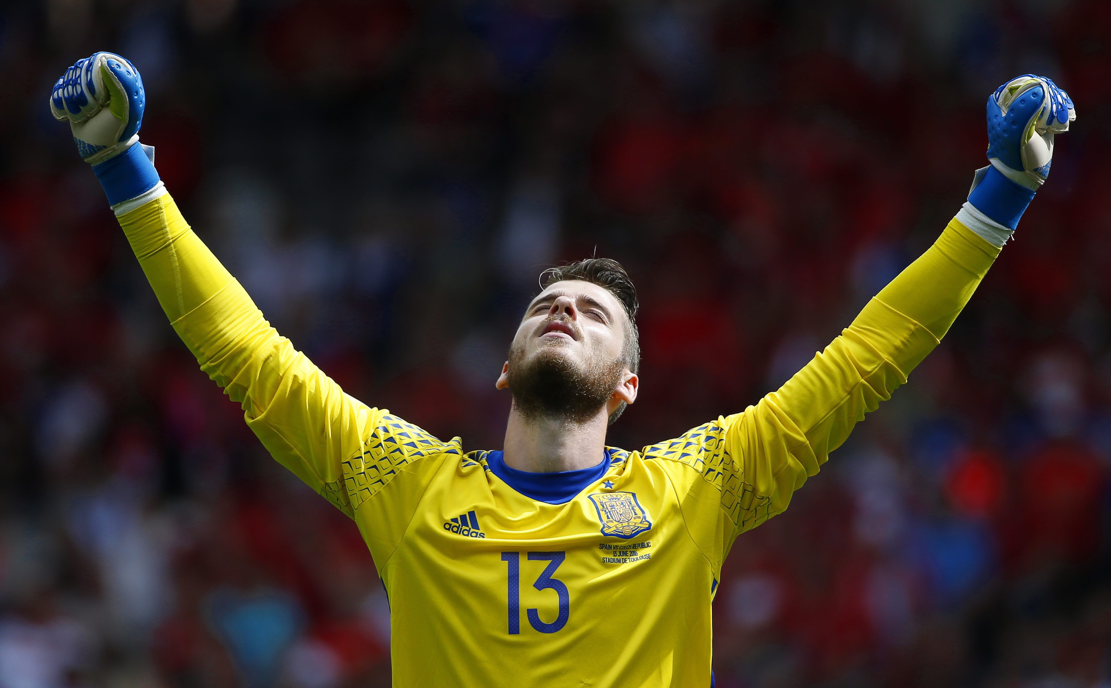 El portero David de Gea celebrando el gol del triunfo de la selección española.