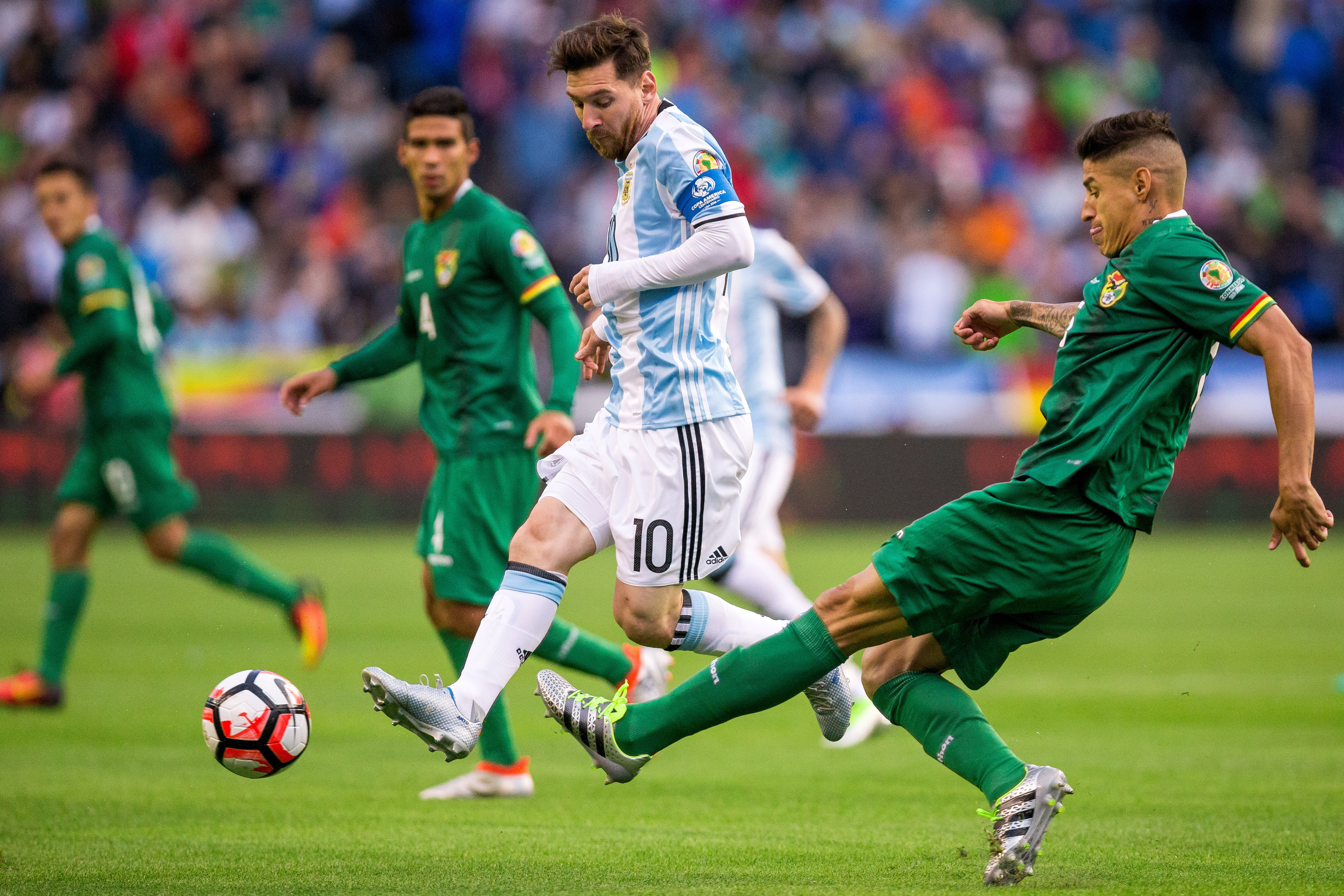 Argentina, que contó con Lionel Messi los segundos 45 minutos, aseguró el primer puesto del grupo D gracias al fácil triunfo ante Bolivia (3-0) y se medirá el próximo sábado 18 en Boston a Venezuela, su rival en los cuartos de final de la Copa América Centenario.