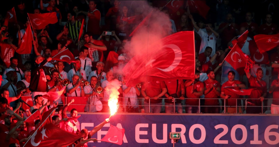 La afición turca encendió bengalas y lanzó petardos a la conclusión del encuentro que su selección jugó contra España, en el Allianz Riviera de Niza.