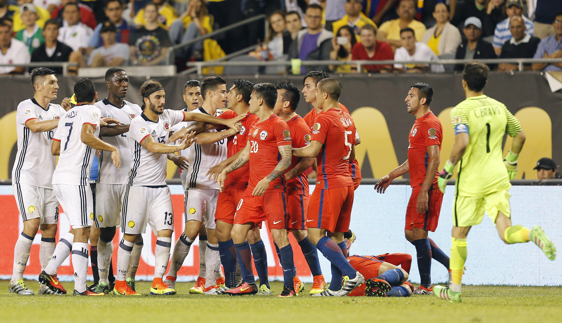 Árbitro: Joel Aguilar (El Salvador). Expulsó a Carlos Sánchez (m.56) por doble amonestación. Mostró amarilla por Colombia a Carlos Bacca y James Rodríguez; por Chile a Claudio Bravo, Alexis Sánchez, Jean Beausejour, Edson Puch y Francisco Silva.