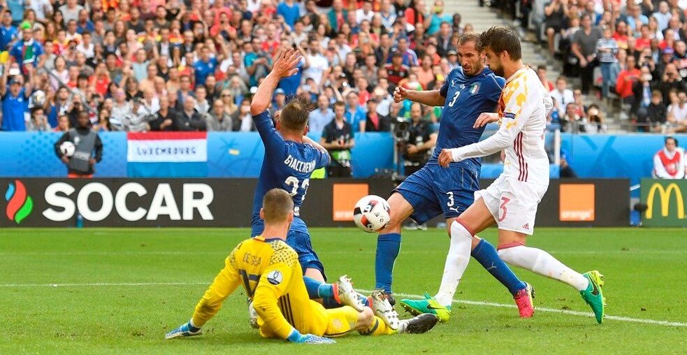 Pero Italia es mucha Italia. Son los transalpinos unos consumados maestros en dormir los partidos y en llevarlos a sus intereses. El juego español se iría diluyendo poco a poco, mientras la Azzurra, a la contra, quiso matar el encuentro, como en una acción de Insigne, que acaba de entrar por un soberbio Éder, al romperle la cintura a Sergio Ramos. La réplica la puso Silva con un centro raso hacia el segundo palo que no llegó a rematar Pedro por muy poco, aunque la mejor ocasión la tuvo Piqué, con un remate en el primer palo, tras un balón que Barzagli intentó despejar, pero magníficamente desviado por Buffon.