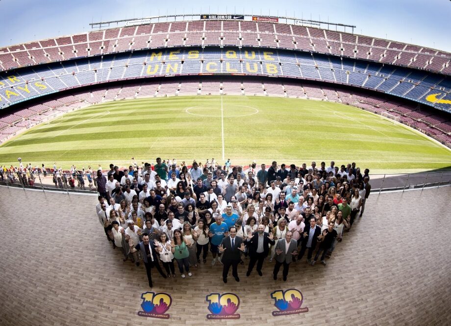 Los empleados del FC Barcelona han mostrado su solidaridad a Leo Messi en un acto que se ha celebrado este lunes al mediodía en el Camp Nou. Los asistentes han levantado las dos manos mostrando el número '10' -el dorsal de Messi- para unirse a la campaña que ha iniciado el club azulgrana desde el pasado sábado en las redes sociales.