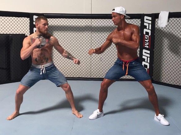 El luchador irlandés y Cristiano se admiran mutuamente y no dudaron en posar juntos para mostrar su encuentro. En una de las imágenes se puede ver a ambos preparados para la pelea como si de un combate se tratase.