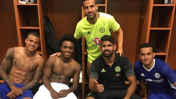 "Muchas gracias por todo, amigos", escribe un Diego Costa que aparece en el vestuario del Chelsea posando junto a varios futbolistas, entre ellos los españoles Cesc Fábregas y Pedro Rodríguez, que sí tuvieron minutos frente a los Reds.