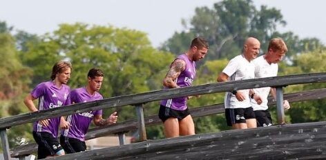 Sergio Ramos, James Rodríguez y Luka Modric continúan con su puesta a punto con entrenamiento por separado del resto tras la llegada del Real Madrid a Ann Harbor (Michigan) para enfrentarse al Chelsea de Antonio Conte este sábado.
