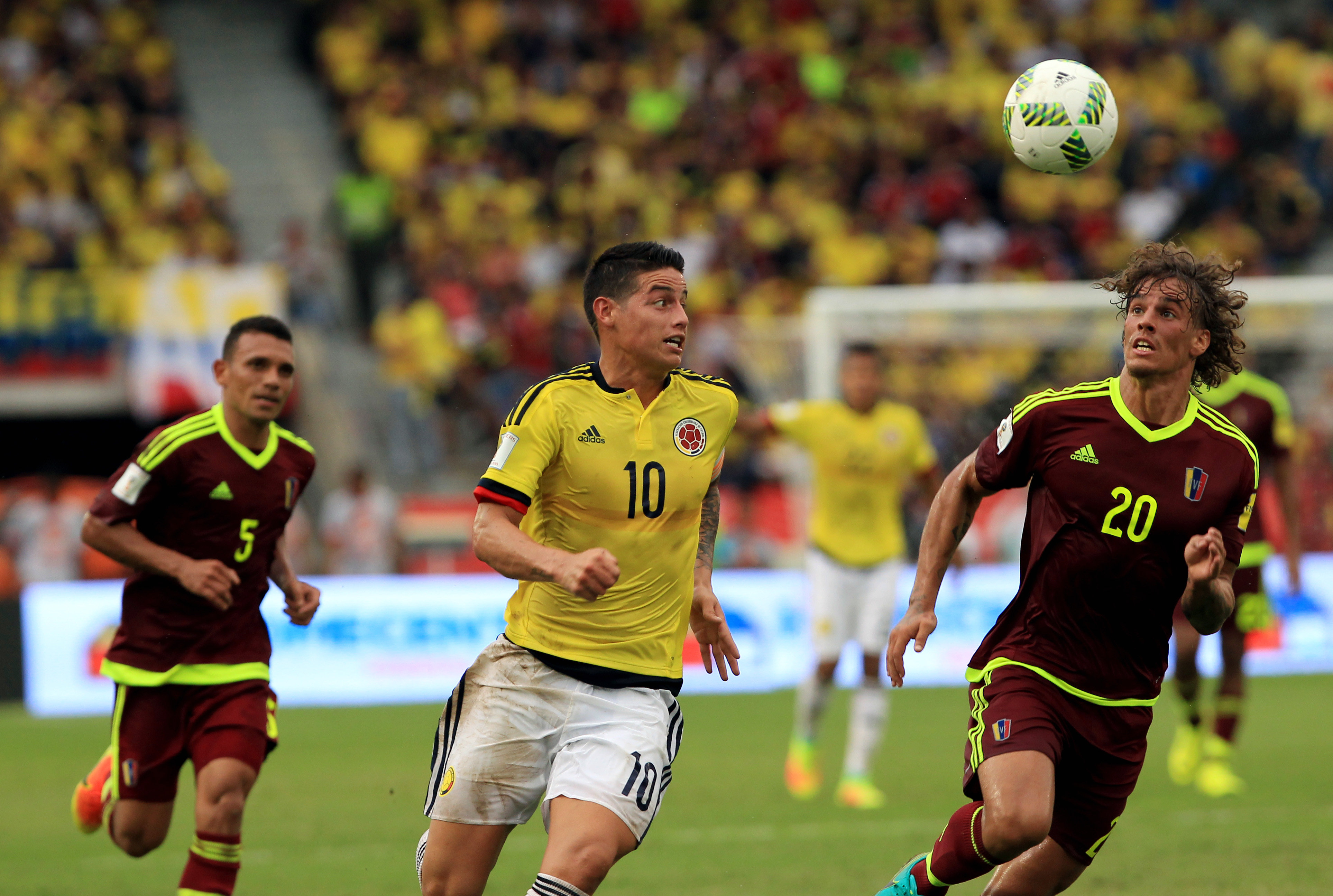 Colombia derrotó hoy por 2-0 a Venezuela en una tarde en la que James Rodríguez fue figura en el partido de la séptima jornada de las eliminatorias al Mundial de Rusia 2018 que le significó a José Pekerman su primera victoria ante la Vinotinto desde que dirige al equipo nacional.