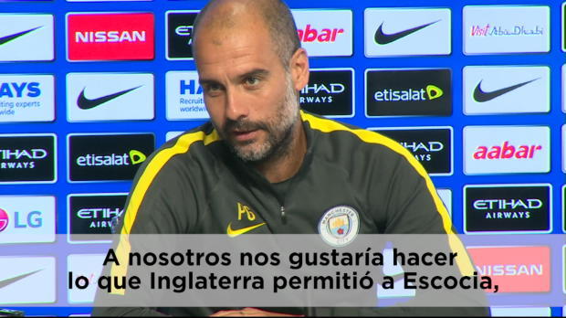 Pep Guardiola ha aprovechado la rueda de prensa previa al derbi de Manchester para hablar de la Diada, de Cataluña y Escocia.