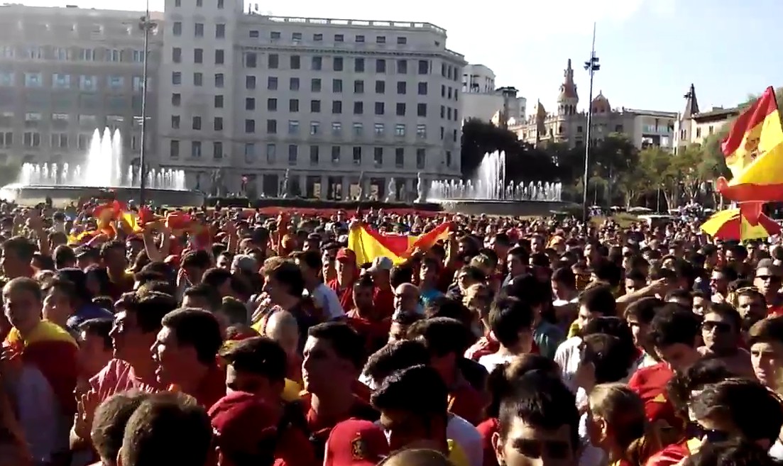 De hecho, las 600 personas que acudieron a la céntrica plaza barcelonesa se quedaron sin poder ver la primera parte del encuentro con Italia por problemas de permisos con la Guardia Urbana.