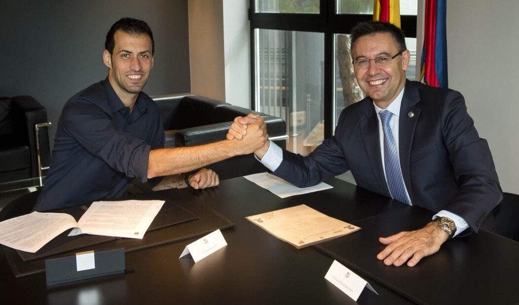 Acompañado del presidente Josep Maria Bartomeu, Busquets ha rubricado su nuevo contrato en las oficinas del club. El jugador fue sustituido anoche, al principio de la segunda parte del partido de Liga contra el Atlético de Madrid, a causa de un proceso febril.