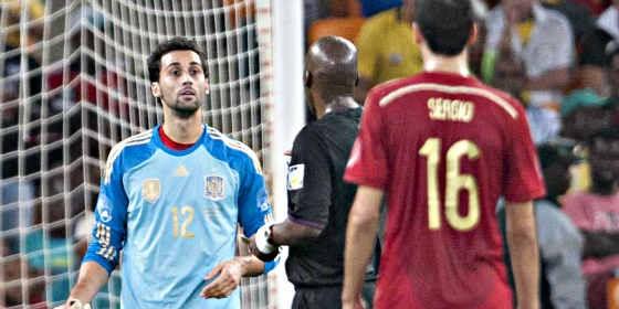 Los hechos tuvieron lugar ante Sudáfrica en un amistoso. Valdés lesionado con los seis cambios hechos y Arbeloa se puso bajo palos. El colegiado permitió un cambio extra y entró Pepe Reina a los dos minutos.