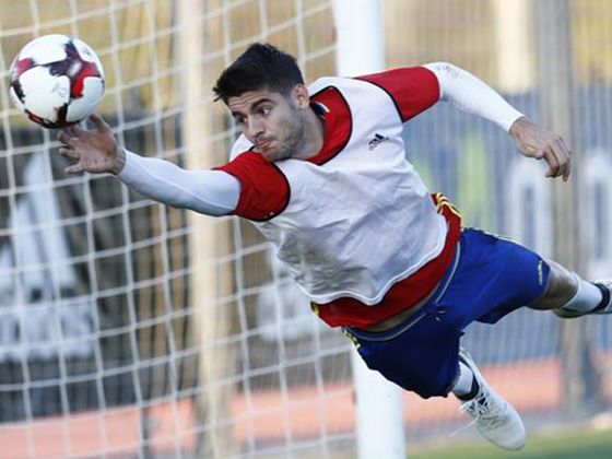 A Morata se le ha visto probar como portero en uno de los últimos entrenamientos con la Selección española y no de le dio nada mal.
