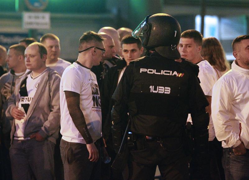 Los ultras del Legia se enfrentaron con la Policía Nacional en los aledaños del Bernabéu antes del partido, para el que se había preparado un dispositivo de seguridad formado por 2.000 efectivos. Los agentes dispararon balas de goma y cargaron contra los radicales del Legia, en unos disturbios que se saldaron con doce polacos detenidos.