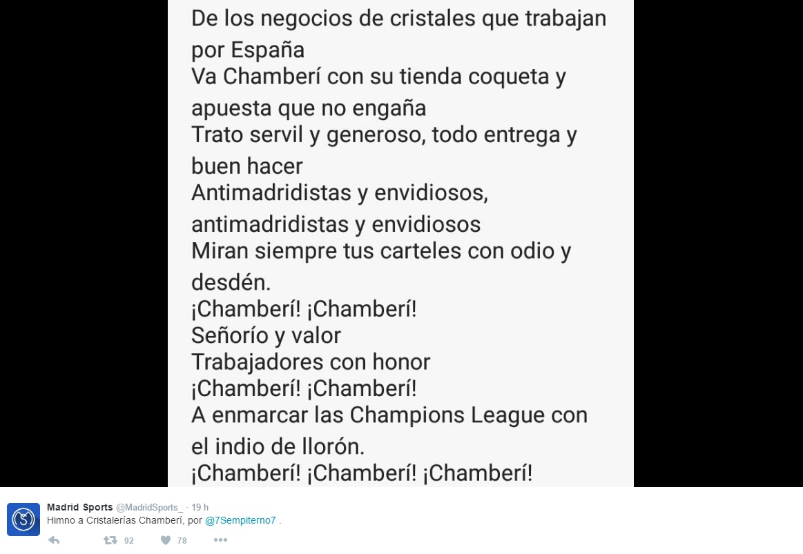 Cristalerías Chamberí, una modesta tienda de barrio en Madrid, se convirtió el lunes en 'trending topic' mundial en Twitter gracias a la frustración de un aficionado del Atlético.