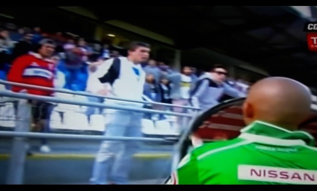 Sebastián Pol, delantero argentino que juega en el Audax Italiano de Chile, propinó una patada a un hincha que lo había insultado durante el partido ante el Universidad Católica (4-1).