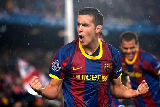 Pedro Rodríguez celebra el gol que ponía al Barcelona por delante en el marcador (1-0). El canario aprovechó un gran pase de Iniesta, posiblemente el mejor de los azulgrana, para batir a Iker Casillas.