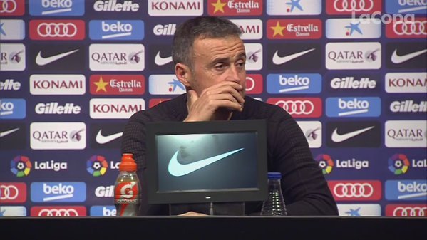 Un periodista preguntaba a Luis Enrique por la 'no foto' con Quique Sánchez Flores en la previa del derbi, y el asturiano, tras soltar una carcajada, se arrancó a cantar un villancico.