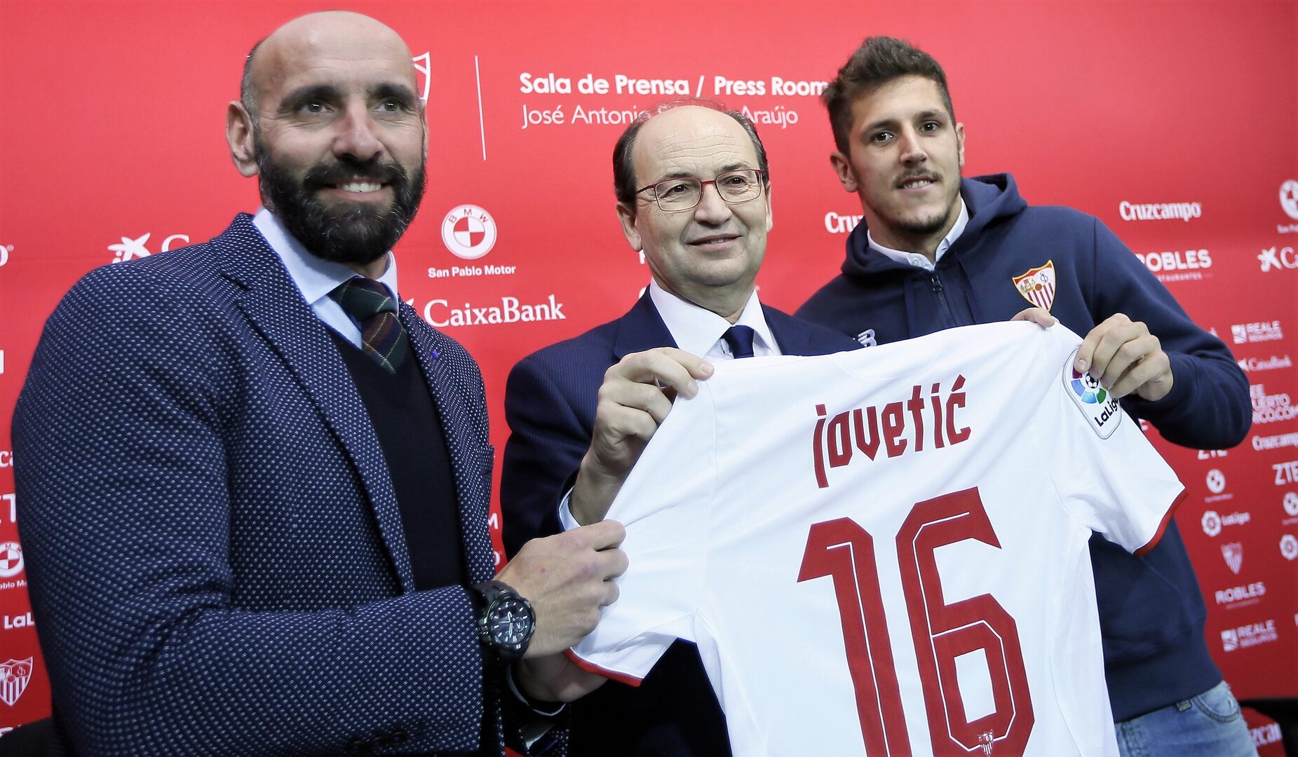 Ya es oficial. El delantero montenegrino Stevan Jovetic se ha convertido este martes en nuevo jugador del Sevilla, equipo al que llega cedido por el Inter Milán italiano por lo que resta de temporada. Jovetic, de 27 años, es un jugador al que el Sevilla seguía desde el verano de 2006 y del que el club andaluz busca que recupere el nivel que exhibió en la Fiorentina antes de su paso por el Manchester City y el Inter, según señala la entidad hispalense en un comunicado.