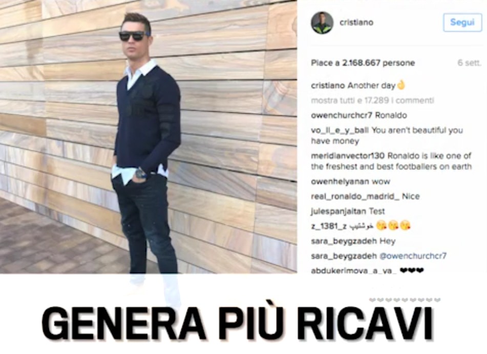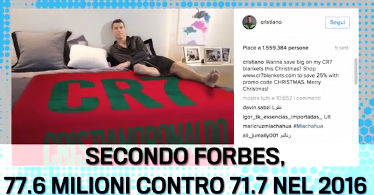"Segundo en la lista Forbes. 77.6 millones frente a los 71.7 (Messi) en 2016"