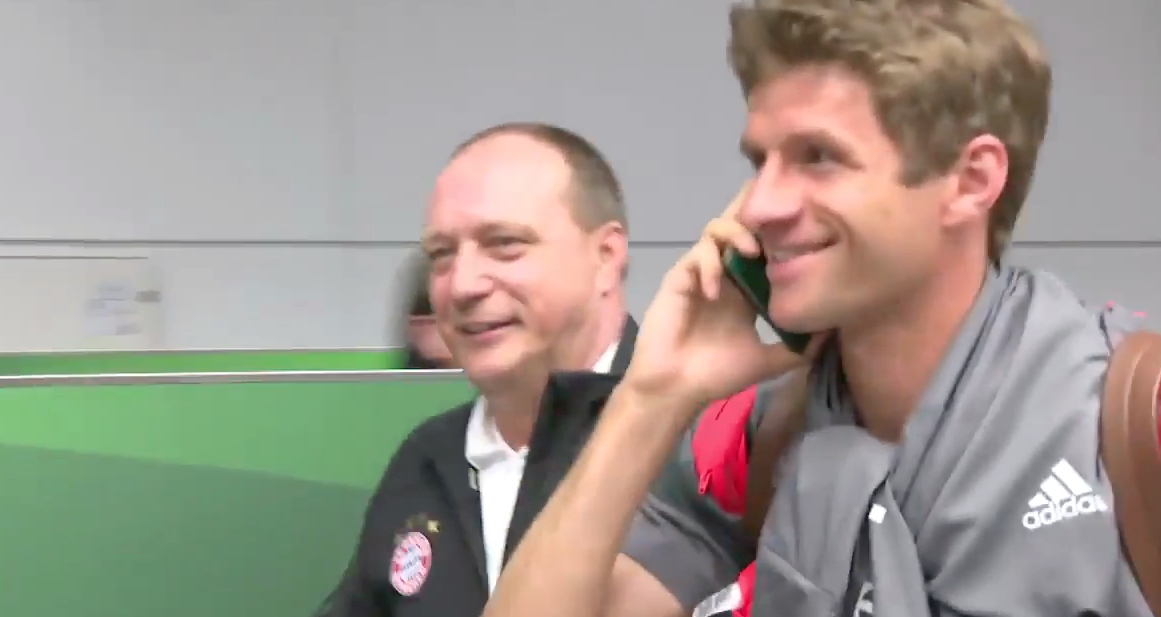 Thomas Müller quiso esquivar a la prensa y terminó haciendo el ridículo. La escena ha tenido lugar este jueves en el Aeropuerto Internacional de Múnich-Franz Josef Strauss, adonde ha llegado el Bayern tras haber disputado el pasado martes un amistoso ante el Eupen, de la segunda división de Bélgica —triunfo por 0-5 para el conjunto dirigido por Carlo Ancelotti—.
